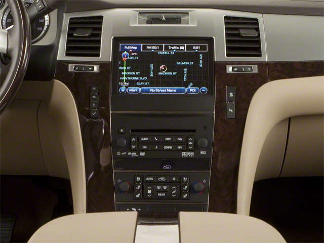 10 Speakers, 1st & 2nd Row All-Weather Floor Mats, 22 x 9 7-Spoke Ultra-Bright Aluminum Wheels, 2nd Row Power Seat Release, 3.42 Rear Axle Ratio, 3rd Row All-Weather Floor Mats, 3rd Row DVD Screen, 3rd row seats: split-bench, 4-Wheel Disc Brakes, A/V remote, ABS brakes, Adaptive suspension, Adjustable pedals, Air Conditioning, Alloy wheels, AM/FM radio: SiriusXM, AM/FM Stereo w/Navigation, Auto High-beam Headlights, Auto tilt-away steering wheel, Auto-dimming door mirrors, Auto-dimming Rear-View mirror, Auto-leveling suspension, Automatic temperature control, Body Color Body Side Moldings, Body Color Door Handles, Bodyside moldings, Brake assist, Bumpers: body-color, CD player, Compass, Delay-off headlights, Driver door bin, Driver vanity mirror, Dual front impact airbags, Dual front side impact airbags, Dual-Outlet Stainless-Steel Exhaust, DVD-Audio, Electronic Stability Control, Emergency communication system: OnStar Directions & Connections, Exterior Parking Camera Rear, Front anti-roll bar, Front Bucket Seats, Front Center Armrest w/Storage, Front dual zone A/C, Front fog lights, Front reading lights, Front wheel independent suspension, Fully automatic headlights, Garage door transmitter, Headphones, Heated & Cooled Front Bucket Seats, Heated door mirrors, Heated front seats, Heated rear seats, Heated Steering Wheel, Heated steering wheel, High intensity discharge headlights: Xenon, Illuminated entry, IntelliBeam Headlamps, Leather steering wheel, LED Headlamps, Low tire pressure warning, Magnetic Ride Control Suspension Package, Memory seat, Navigation System, NavTraffic, Nuance Leather Seating Surfaces, Occupant sensing airbag, Outside temperature display, Overhead airbag, Overhead console, Panic alarm, Passenger door bin, Passenger vanity mirror, Pedal memory, Power door mirrors, Power driver seat, Power Liftgate, Power moonroof, Power passenger seat, Power steering, Power Tilt-Sliding Sunroof w/Express-Open/Close, Power windows, Power-Retractable Assist Steps, Preferred Equipment Group 1SC, Radio data system, Rear 2-Piece Applique & Badge, Rear air conditioning, Rear anti-roll bar, Rear audio controls, Rear Cargo Mat, Rear reading lights, Rear Seat Entertainment System, Rear window defroster, Rear window wiper, Remote keyless entry, Roof rack, Security system, Side Blind Zone Alert, SIRIUSXM Satellite Radio, Speed control, Split folding rear seat, Spoiler, Steering wheel memory, Steering wheel mounted audio controls, Tachometer, Tilt steering wheel, Tinted Clear CHMSL & Tail Lamps, Traction control, Trip computer, Turn signal indicator mirrors, Unique Body Color Upper & Lower Grilles, USB Port Audio System Feature, Variably intermittent wipers, Ventilated front seats, Wheel Locks. 2012 Cadillac Escalade ESV Premium