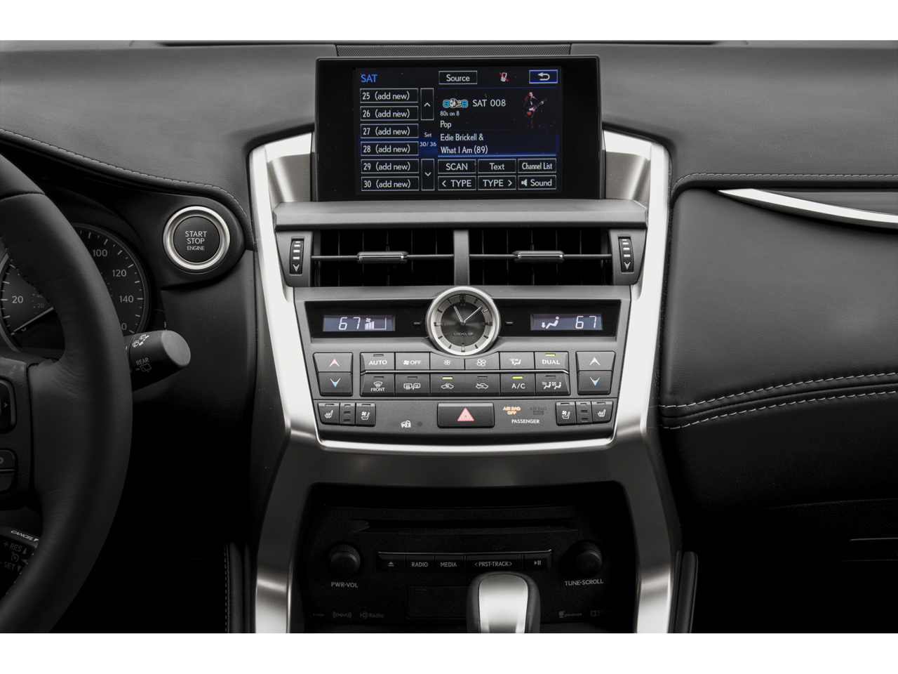 3.888 Axle Ratio, 4-Wheel Disc Brakes, 8 Speakers, ABS brakes, Air Conditioning, Alloy wheels, AM/FM radio: SiriusXM, Auto-dimming Rear-View mirror, Automatic temperature control, Backup Guide Monitor, Brake assist, Bumpers: body-color, CD player, Comfort Package, Driver door bin, Driver vanity mirror, Dual front impact airbags, Dual front side impact airbags, Electrochromic Inside Rear-View Mirror, Electrochromic Mirror w/BSM and Memory, Electronic Stability Control, Emergency communication system: Lexus Enform w/Safety Connect, Exterior Parking Camera Rear, Four wheel independent suspension, Front anti-roll bar, Front Bucket Seats, Front Center Armrest, Front dual zone A/C, Front fog lights, Front reading lights, Fully automatic headlights, Heated & Ventilated Front Seats, Heated door mirrors, HomeLink Universal Transceiver, Illuminated entry, Intuitive Parking Assist, Knee airbag, Leather Shift Knob, Leather steering wheel, Lexus Enform Destination Services, Lexus Enform Remote, Low tire pressure warning, Navigation System Package, Occupant sensing airbag, Outside temperature display, Overhead airbag, Overhead console, Panic alarm, Passenger door bin, Passenger vanity mirror, Power Back Door, Power door mirrors, Power driver seat, Power passenger seat, Power steering, Power Tilt & Slide Moonroof/Sunroof, Power windows, Premium Package, Radio data system, Radio: AM/FM/CD Lexus Display Audio, Rear anti-roll bar, Rear reading lights, Rear seat center armrest, Rear window defroster, Rear window wiper, Remote keyless entry, Roof rack: rails only, Security system, Speed control, Speed-sensing steering, Split folding rear seat, Spoiler, Steering wheel mounted audio controls, Synthetic Leather Seat Trim, Tachometer, Telescoping steering wheel, Tilt steering wheel, Traction control, Trip computer, Turn signal indicator mirrors, Variably intermittent wipers, Wheels: 17 x 7.0J 10-Spoke Aluminum, Wheels: 18 x 7.5J, Wireless Charger. 2015 Lexus NX 200t