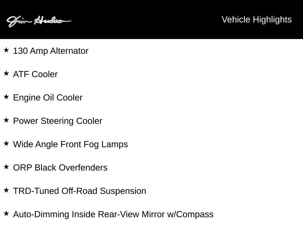 - TRD-Tuned Off-Road Suspension -inc: Bilstein shocks