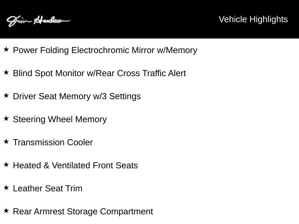 - Front Bucket Seats -inc: 10-way power driver's and front passenger's seat w/fore-aft slide, fore-aft recline, front vertical height, rear vertical height and power lumbar support