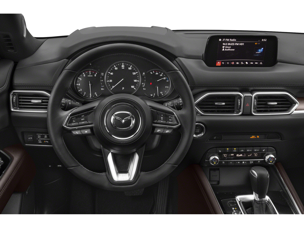 10 Speakers, 4-Wheel Disc Brakes, 4.411 Axle Ratio, ABS brakes, Air Conditioning, Alloy wheels, AM/FM radio: SiriusXM, AppLink/Apple CarPlay and Android Auto, Auto High-beam Headlights, Auto-dimming Rear-View mirror, Automatic temperature control, Bose 10-Speaker Audio Sound System, Brake assist, Bumpers: body-color, Delay-off headlights, Driver door bin, Driver vanity mirror, Dual front impact airbags, Dual front side impact airbags, Electronic Stability Control, Emergency communication system, Four wheel independent suspension, Front anti-roll bar, Front Bucket Seats, Front Center Armrest, Front dual zone A/C, Front fog lights, Front reading lights, Fully automatic headlights, Garage door transmitter: HomeLink, Heads-Up Display, Heated door mirrors, Heated front seats, Heated rear seats, Heated steering wheel, Heated/Ventilated Front Sport Seats, Illuminated entry, Leather Shift Knob, Low tire pressure warning, Mazda Navigation System, Memory seat, Nappa Leather Seat Trim, Navigation system: MAZDA CONNECT, Occupant sensing airbag, Outside temperature display, Overhead airbag, Overhead console, Panic alarm, Passenger door bin, Passenger vanity mirror, Power door mirrors, Power driver seat, Power Liftgate, Power moonroof, Power passenger seat, Power steering, Power windows, Radio data system, Radio: AM/FM/HD Audio System, Rain sensing wipers, Rear anti-roll bar, Rear Bumper Guard, Rear reading lights, Rear seat center armrest, Rear window defroster, Rear window wiper, Remote keyless entry, Roof Rack Side Rails, Snowflake White Pearl Mica Paint, Speed control, Speed-sensing steering, Split folding rear seat, Spoiler, Steering wheel mounted audio controls, Tachometer, Telescoping steering wheel, Tilt steering wheel, Traction control, Trip computer, Turn signal indicator mirrors, Variably intermittent wipers, Ventilated front seats, Wheel Locks w/21mm Lug, Wheels: 19 x 7J Aluminum Alloy w/Dark Finish. 2019 Mazda CX-5 Signature