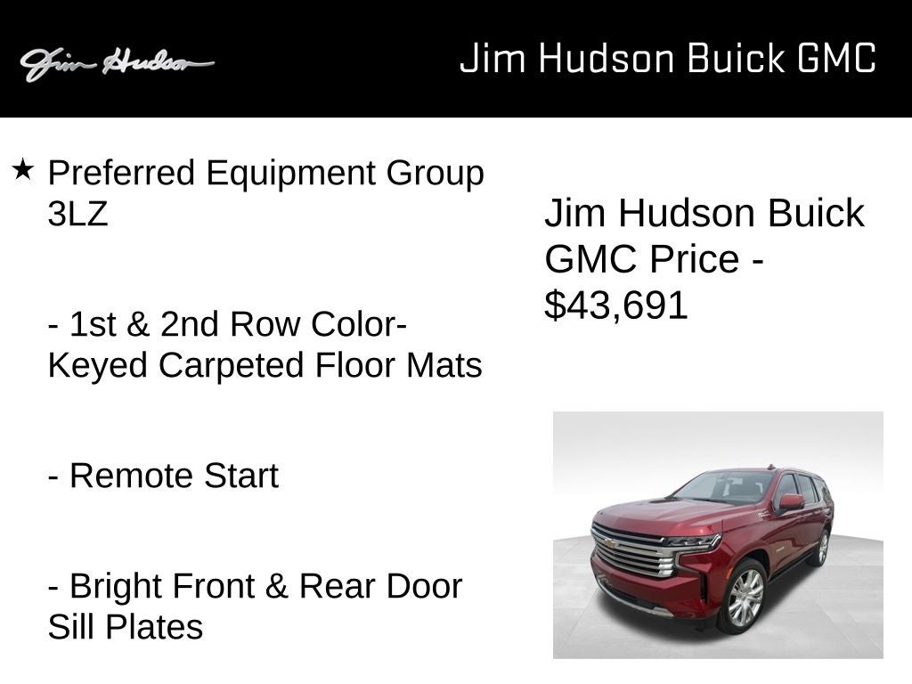 2021 Chevrolet Tahoe High Country Clean CarFax, Local Trade, Well Maintained, Jet Black/Mocha Leather, 15 Diagonal Multi-Color Head-Up Display, 1st & 2nd Row Color-Keyed Carpeted Floor Mats, 2 USB Data Ports, 3rd Row 60/40 Power-Folding Split-Bench Seat, Adaptive Cruise Control, Apple CarPlay/Android Auto, Automatic Heated Steering Wheel, Bright Front & Rear Door Sill Plates, Chrome Door Handles w/Body-Color Strip, Color-Keyed Carpeting Floor Covering, Driver & Front Outboard Passenger Airbags, Dual Exhaust System, Dual-Pane Power Panoramic Sunroof, Enhanced Driver Information Center, Floor Console w/Storage Area, Front & Rear Park Assist, Hands-Free Rear Power Programmable Liftgate, HD Radio, HD Surround Vision, Heads-Up Display, Heated 2nd Row Outboard Seats, Infotainment Display, Inside Rearview Auto-Dimming Rear Camera Mirror, Lane Change Alert w/Side Blind Zone Alert, Lane Keep Assist w/Lane Departure Warning, Leather-Wrapped Steering Wheel, LED Daytime Running Lamps, Memory Settings, Outside Heated Power-Adjustable Mirrors, Power Release 2nd Row Bucket Seats, Power Tilt & Telescopic Steering Column, Power-Retractable Assist Steps, Preferred Equipment Group 3LZ, Premium Package, Rear Camera Mirror Washer, Rear Cross Traffic Alert, Rear Pedestrian Alert, Remote Start, Safety Alert Seat, SiriusXM NavTraffic, SiriusXM Radio w/360L, Universal Home Remote, 10 Speakers, 12-Way Power Driver & Passenger Seat Adjusters, 3.23 Rear Axle Ratio, 3rd row seats: split-bench, 4-Wheel Disc Brakes, ABS brakes, Adaptive suspension, Advanced Trailering Package, Advanced Trailering System, Air Conditioning, Alloy wheels, AM/FM radio: SiriusXM with 360L, Auto High-beam Headlights, Auto-dimming door mirrors, Auto-dimming Rear-View mirror, Auto-leveling suspension, Automatic temperature control, Bose 10-Speaker Centerpoint Surround Audio Sys Ft, Brake assist, Bumpers: body-color, Compass, Delay-off headlights, Driver door bin, Driver vanity mirror, Dual front impact airbags, Dual front side impact airbags, Electronic Stability Control, Emergency communication system: OnStar and Chevrolet connected services capable, Enhanced Automatic Emergency Braking, Extra Capacity Cooling System, Four wheel independent suspension, Front anti-roll bar, Front Bucket Seats, Front Center Armrest, Front dual zone A/C, Front High-Back Reclining Bucket Seats, Front reading lights, Fully automatic headlights, Garage door transmitter, Heated & Ventilated Driver & Front Passenger Seats, Heated door mirrors, Heated Driver & Front Passenger Seats, Heated front seats, Heated rear seats, Heated steering wheel, Hitch Guidance w/Hitch View, Illuminated entry, Integrated Trailer Brake Controller, Leather steering wheel, Low tire pressure warning, Magnetic Ride Control Suspension, Max Trailering Package, Memory seat, Navigation System, Occupant sensing airbag, Outside temperature display, Overhead airbag, Overhead console, Panic alarm, Passenger door bin, Passenger vanity mirror, Perforated Leather Seat Trim, Power door mirrors, Power driver seat, Power Liftgate, Power passenger seat, Power steering, Power windows, Premium audio system: Chevrolet Infotainment 3, Radio: Chevrolet Infotainment 3 Premium System, Rain sensing wipers, Rear air conditioning, Rear anti-roll bar, Rear reading lights, Rear window defroster, Rear window wiper, Remote keyless entry, Roof rack: rails only, Security system, Set of 4 Wheel Locks (LPO), Speed control, Speed-sensing steering, Split folding rear seat, Spoiler, Steering wheel memory, Steering wheel mounted audio controls, Tachometer, Telescoping steering wheel, Tilt steering wheel, Traction control, Trailer Side Blind Zone Alert, Trip computer, Turn signal indicator mirrors, Variably intermittent wipers, Ventilated front seats, Voltmeter, Wheels: 22 x 9 Sterling Silver Premium Painted, Jet Black/Mocha Leather, 15 Diagonal Multi-Color Head-Up Display, 1st & 2nd Row Color-Keyed Carpeted Floor Mats, 2 USB D