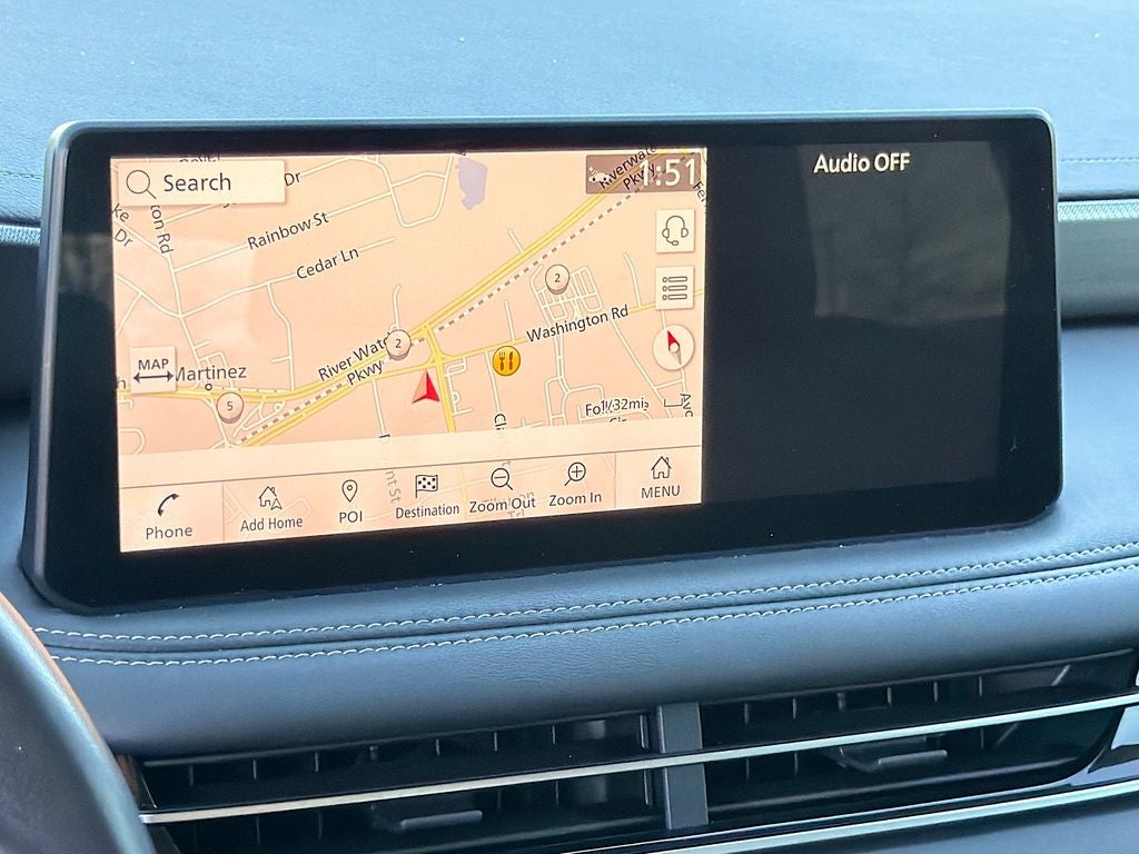 - Radio: AM/FM Audio System -inc: 9 speakers, INFINITI InTouch 12.3" interactive display, wireless Apple CarPlay, Android Auto, HD Radio technology, data capable USB ports (2x: 1-type A and 1-type C), hands-free text messaging assistant, SiriusXM radio, SiriusXM travel link w/access to parking, fuel prices, weather, movie listings, stock prices and sports scores, SiriusXM traffic w/access to detailed traffic information, WiFi hotspot, INFINITI voice recognition (Siri Eyes Free/Google Assistant), INFINITI InTouch services, Bluetooth® hands-free phone and audio streaming, 6 total USB ports and navigation w/detailed real time premium traffic info, 3D building graphics and seamless turn-by-turn directions