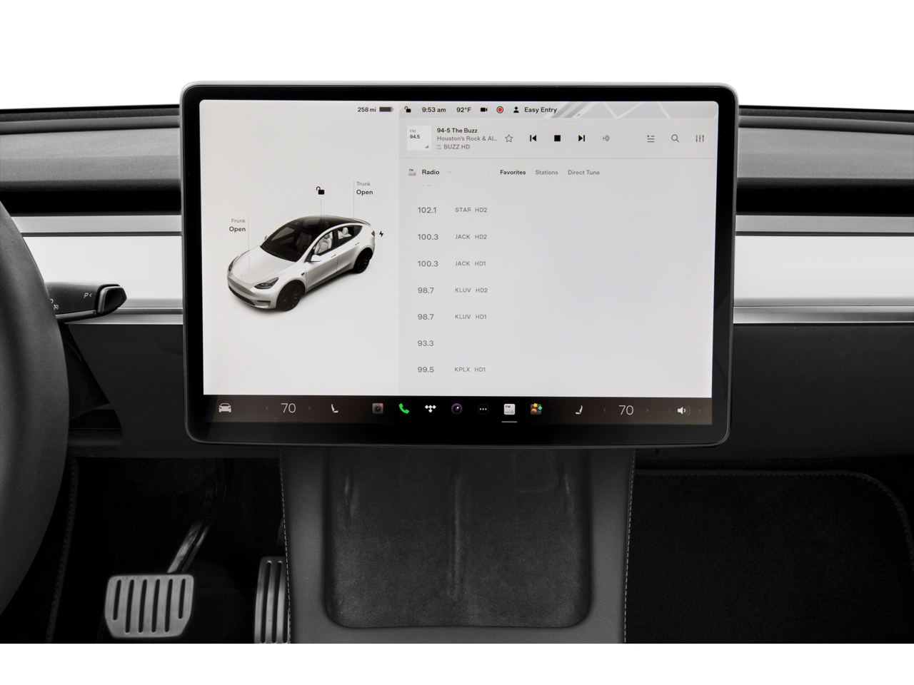 14 Speakers, 4-Wheel Disc Brakes, 5 Seat Interior, 9.0 Axle Ratio, ABS brakes, Air Conditioning, Alloy wheels, Audio memory, Auto High-beam Headlights, Auto tilt-away steering wheel, Auto-dimming door mirrors, Auto-dimming Rear-View mirror, Automatic temperature control, Brake assist, Bumpers: body-color, Compass, Delay-off headlights, Driver door bin, Driver vanity mirror, Dual front impact airbags, Dual front side impact airbags, Electronic Stability Control, Exterior Parking Camera Rear, Four wheel independent suspension, Front anti-roll bar, Front Bucket Seats, Front Center Armrest, Front dual zone A/C, Front fog lights, Front reading lights, Fully automatic headlights, Genuine wood dashboard insert, Heated door mirrors, Heated front seats, Heated rear seats, Heated steering wheel, HVAC memory, Illuminated entry, Knee airbag, Lane Departure Warning System, Low tire pressure warning, Memory seat, Navigation System, Occupant sensing airbag, Outside temperature display, Overhead airbag, Passenger door bin, Passenger vanity mirror, Power door mirrors, Power driver seat, Power Liftgate, Power passenger seat, Power steering, Power windows, Premium Audio System, Premium Seat Trim, Radio data system, Rain sensing wipers, Rear reading lights, Rear seat center armrest, Rear window defroster, Remote keyless entry, Security system, Speed control, Speed-sensing steering, Split folding rear seat, Steering wheel memory, Steering wheel mounted A/C controls, Steering wheel mounted audio controls, Telescoping steering wheel, Tilt steering wheel, Traction control, Trip computer, Variably intermittent wipers, Wheels: 19 x 9.5 Gemini. 2022 Tesla Model Y Long Range