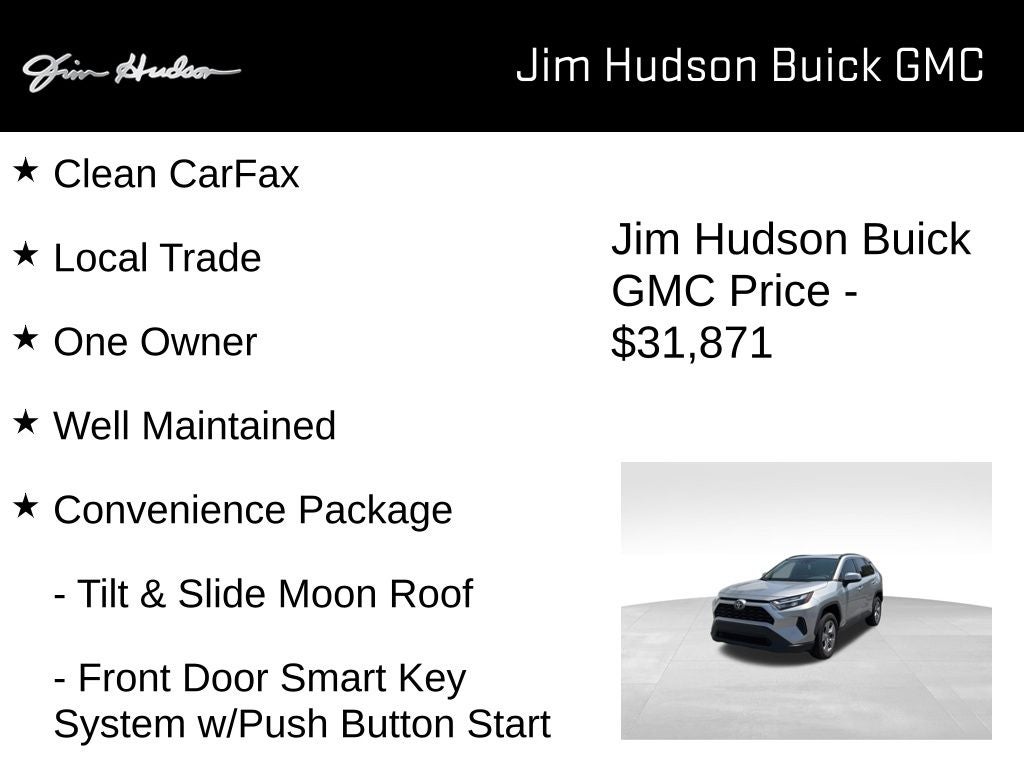 2022 Toyota RAV4 Hybrid XLE Clean CarFax, Local Trade, One Owner, Well Maintained, 2.5L 4-Cylinder, Apple CarPlay/Android Auto, Convenience Package, Front Door Smart Key System w/Push Button Start, Tilt & Slide Moon Roof, 4-Wheel Disc Brakes, 6 Speakers, ABS brakes, Air Conditioning, Alloy wheels, AM/FM radio: SiriusXM, AM/FM Stereo, Auto High-beam Headlights, Automatic temperature control, Axle Ratio: TBD, Brake assist, Bumpers: body-color, Delay-off headlights, Driver door bin, Driver vanity mirror, Dual front impact airbags, Dual front side impact airbags, Electronic Stability Control, Emergency communication system: Safety Connect with 1-year trial, Exterior Parking Camera Rear, Fabric Seat Trim (FA), Four wheel independent suspension, Front anti-roll bar, Front Bucket Seats, Front Center Armrest, Front dual zone A/C, Front fog lights, Front reading lights, Front Sport Seats, Fully automatic headlights, Heated door mirrors, Illuminated entry, Knee airbag, Lane Departure Warning System, Low tire pressure warning, Occupant sensing airbag, Outside temperature display, Overhead airbag, Overhead console, Panic alarm, Passenger door bin, Passenger vanity mirror, Power door mirrors, Power driver seat, Power steering, Power windows, Radio data system, Rear anti-roll bar, Rear seat center armrest, Rear window defroster, Rear window wiper, Remote keyless entry, Roof rack: rails only, Speed control, Speed-sensing steering, Split folding rear seat, Spoiler, Steering wheel mounted audio controls, Telescoping steering wheel, Tilt steering wheel, Traction control, Trip computer, Turn signal indicator mirrors, Variably intermittent wipers, Wheels: 17 x 7.0J Silver Aluminum Alloy, 2.5L 4-Cylinder, Apple CarPlay/Android Auto, Convenience Package, Front Door Smart Key System w/Push Button Start, Tilt & Slide Moon Roof.