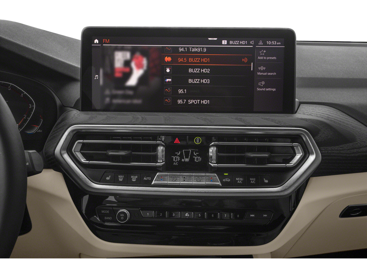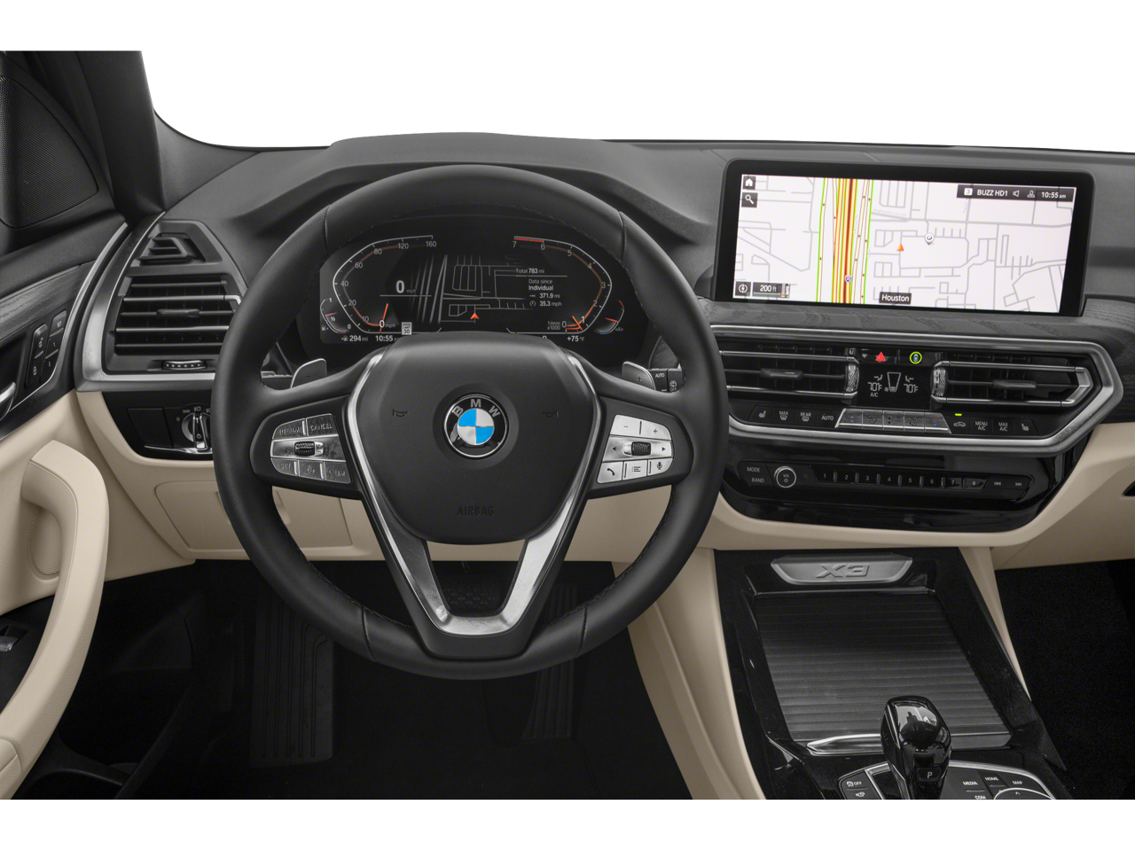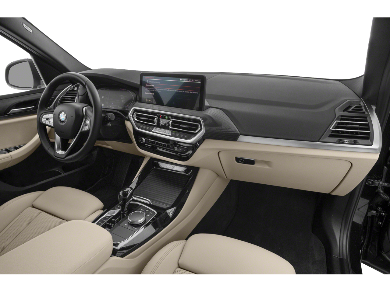 8-Speed Automatic Sport, 12 Speakers, 3.385 Axle Ratio, 4-Wheel Disc Brakes, ABS brakes, Aerodynamic Kit, Air Conditioning, Alloy wheels, Aluminum Trim, AM/FM Radio, AM/FM radio: SiriusXM, Apple CarPlay & Android Auto Compatibility, Auto High-beam Headlights, Auto-dimming door mirrors, Auto-dimming Rear-View mirror, Automatic temperature control, BMW Assist eCall, BMW TeleServices, Brake assist, Bumpers: body-color, Comfort Access Keyless Entry, Connected Package Pro, ConnectedDrive Services, Delay-off headlights, Driver door bin, Driver Lumbar Support, Driver vanity mirror, Dual front impact airbags, Dual front side impact airbags, Electronic Stability Control, Emergency communication system: BMW Assist eCall, Enhanced USB & Bluetooth® w/Smartphone Integration, Extended Shadowline Trim, Exterior Parking Camera Rear, Four wheel independent suspension, Front anti-roll bar, Front Bucket Seats, Front Center Armrest, Front dual zone A/C, Front reading lights, Front Ventilated Seats, Fully automatic headlights, Garage door transmitter, Genuine wood dashboard insert, Genuine wood door panel insert, harman/kardon Surround Sound System, Head-Up Display, Heated door mirrors, Heated Front Seats, Heated Steering Wheel, Hi-Fi Sound System, Illuminated entry, Knee airbag, Live Cockpit Pro w/Navigation, Low tire pressure warning, Lumbar Support, M Shadowline Lights, M Sport Package, M Sport Package (337), M Steering Wheel, Memory seat, Navigation, Navigation System, Occupant sensing airbag, Outside temperature display, Overhead airbag, Panic alarm, Panoramic Moonroof, Passenger door bin, Passenger vanity mirror, Perforated SensaTec Upholstery, Power door mirrors, Power driver seat, Power Front Seats, Power Liftgate, Power passenger seat, Power steering, Power windows, Premium Package, Radio data system, Rain sensing wipers, Rear air conditioning, Rear anti-roll bar, Rear reading lights, Rear seat center armrest, Rear window defroster, Rear window wiper, Remote keyless entry, Roof Rails in High-Gloss Shadowline, Security system, Shadowline Exterior Trim, Shadowline Package, SiriusXM Satellite Radio, Smoke Grey Aluminum Rhombicle Trim, Speed control, Speed-sensing steering, Speed-Sensitive Wipers, Split folding rear seat, Spoiler, Sport Seats, Sport steering wheel, Steering wheel mounted audio controls, Tachometer, Telescoping steering wheel, Tilt steering wheel, Traction control, Trip computer, Turn signal indicator mirrors, Variably intermittent wipers, Wheels: 19 x 7.5 M Y-Spoke Bi-Color (Style 887M), Wheels: 19 x 7.5 Y-Spoke (Style 693), Wheels: 20 x 8.0 Fr & 20 x 9.5 Rr (Style 699M), WiFi Hotspot, Without Exterior Lines Designation, 8-Speed Automatic Sport. 2023 BMW X3 xDrive30i