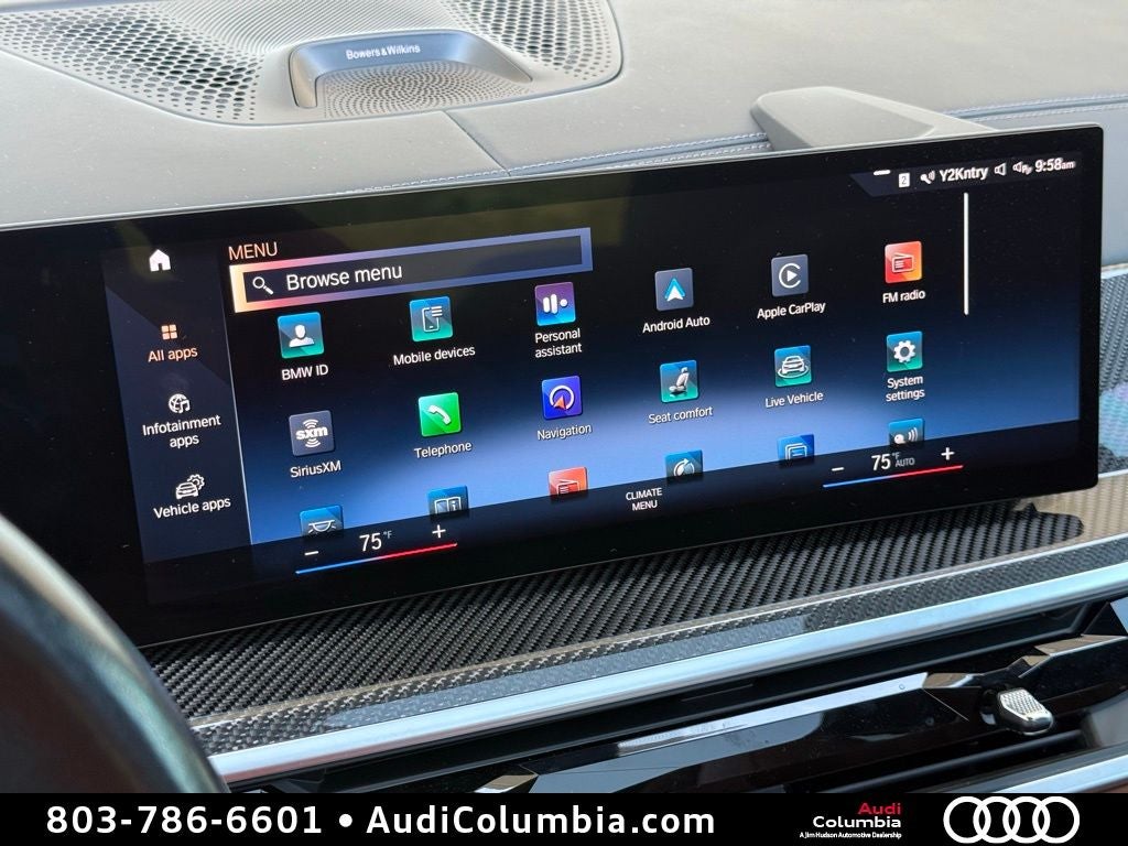 2023 BMW X7 M60i Clean CarFax, Well Maintained, 2nd Row Captain's Chairs, 3rd row seats: split-bench, 4-Wheel Disc Brakes, 5-Zone Automatic Climate Control, ABS brakes, Active Driving Assistant Pro, Adaptive suspension, Alloy wheels, Apple CarPlay & Android Auto Compatibility, Auto-dimming Rear-View mirror, Auto-leveling suspension, Automatic temperature control, BMW M 50 Years Emblems (DISC), Bowers & Wilkins Diamond Surround Sound System, Climate Comfort Package, Connected Package Pro, Driving Assistance Professional Package, Dual front impact airbags, Dual front side impact airbags, Emergency communication system: BMW Assist eCall, Extended Merino Leather Upholstery, Extended Shadowline Trim, Front & Rear Heated Seats, Front anti-roll bar, Front dual zone A/C, Front Ventilated Seats, Fully automatic headlights, Head restraints memory, Head-Up Display, Heated Multi-Contour Seats, Knee airbag, Low tire pressure warning, M Sport Package Pro, M Sport Professional Package, Memory seat, Navigation system: BMW Maps Navigation, Occupant sensing airbag, Overhead airbag, Power adjustable front head restraints, Power Front Seats, Power moonroof: Panorama, Rain sensing wipers, Rear anti-roll bar, Rear dual zone A/C, Steering wheel memory, Wheels: 22 x 9.5 Fr & 22 x 10.5 Rr Double-Spoke.