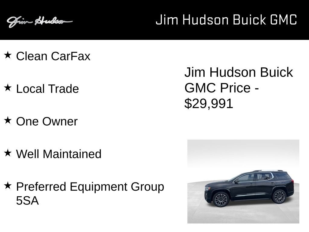 2023 GMC Acadia Denali Clean CarFax, Local Trade, One Owner, Well Maintained, AWD, Jet Black Leather, 170 Amp Alternator, 20 Ultra Bright Machined Aluminum Wheels, 3 Years of OnStar & Connected Services Plan (DISC), 3.49 Final Drive Axle Ratio, 3rd row seats: split-bench, 4-Wheel Disc Brakes, 6-Passenger (2-2-2 Seating Configuration), 8 Speakers, 8-Way Power Driver Seat Adjuster, 8-Way Power Passenger Seat Adjuster, ABS brakes, Adaptive Cruise Control, Adaptive Ride Control, Air Conditioning, Alloy wheels, AM/FM radio: SiriusXM with 360L, Apple CarPlay/Android Auto, Auto High-beam Headlights, Auto-dimming door mirrors, Auto-dimming Rear-View mirror, Automatic temperature control, Black Diamond Edition, Bose Premium 8-Speaker Audio System Feature, Brake assist, Bumpers: body-color, Compass, Delay-off headlights, Denali Technology Package, Denali Ultimate Package, Driver door bin, Driver vanity mirror, Dual front impact airbags, Dual front side impact airbags, Dual SkyScape 2-Panel Power Sunroof, Electronic Stability Control, Emergency communication system: OnStar and GMC connected services capable, Enhanced Automatic Emergency Braking, Four wheel independent suspension, Front anti-roll bar, Front Bucket Seats, Front Center Armrest, Front dual zone A/C, Front fog lights, Front reading lights, Fully automatic headlights, Garage door transmitter, HD Surround Vision, Heads-Up Display, Heated & Ventilated Driver & Front Passenger Seats, Heated door mirrors, Heated Driver & Front Passenger Seats, Heated front seats, Heated Rear Outboard Seating Positions, Heated rear seats, Heated steering wheel, Heavy-Duty Cooling System, Hit The Road Package, Hitch Guidance w/Hitch View, Illuminated entry, Knee airbag, Low tire pressure warning, Memory seat, Molded Assist Steps, Navigation System, Not Equipped w/Front & Rear Park Assist, Occupant sensing airbag, Outside temperature display, Overhead airbag, Overhead console, Panic alarm, Passenger door bin, Passenger vanity mirror, Perforated Leather-Appointed Seat Trim, Performance Ride & Handling Suspension, Power door mirrors, Power Driver Lumbar Control Seat Adjuster, Power driver seat, Power Liftgate, Power Passenger Lumbar Control Seat Adjuster, Power passenger seat, Power steering, Power windows, Preferred Equipment Group 5SA, Radio data system, Radio: AM/FM 8 Diagonal Multi-Touch Navigation, Rear air conditioning, Rear anti-roll bar, Rear Camera Mirror, Rear Camera Mirror Washer, Rear reading lights, Rear window defroster, Rear window wiper, Remote keyless entry, Roof Rack Cross Rails (LPO), Roof rack: rails only, Security system, SiriusXM w/360L, Speed control, Speed-sensing steering, Spoiler, Steering wheel memory, Steering wheel mounted audio controls, Tachometer, Telescoping steering wheel, Thatcham Black Lug Nut & Wheel Lock Kit (LPO), Tilt steering wheel, Traction control, Trailering Assist Guidelines, Trailering Package, Trip computer, Turn signal indicator mirrors, Variably intermittent wipers, Ventilated front seats, Voltmeter, Wheels: 20 Aluminum Paint w/After Midnight Finish, Wireless Apple CarPlay/Wireless Android Auto, AWD, Jet Black Leather.