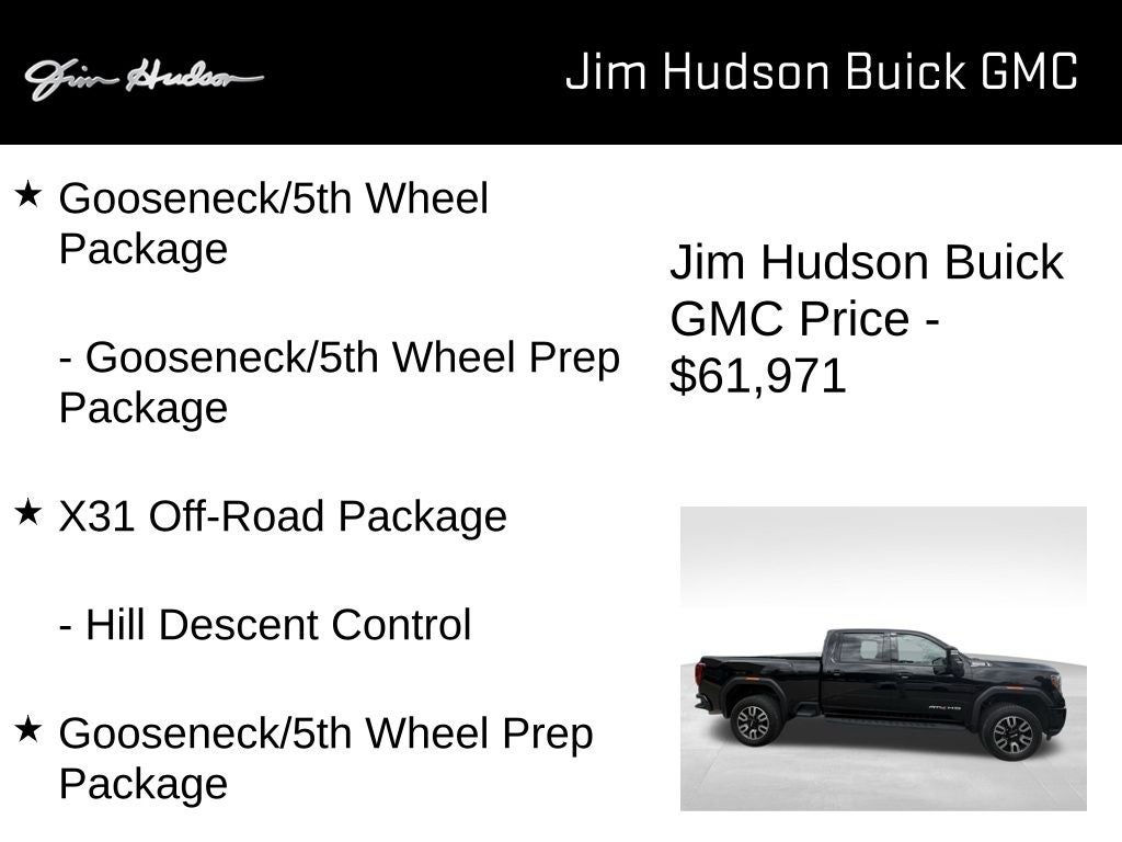 2023 GMC Sierra 2500HD AT4 Clean CarFax, Local Trade, One Owner, Well Maintained, 10-Speed Automatic, 4WD, Jet Black With Kalahari Accents Leather, 20 Machined Aluminum Wheels, Apple CarPlay/Android Auto, Bed View Camera w/2 Trailer Camera Provisions, Gooseneck/5th Wheel Package, Gooseneck/5th Wheel Prep Package, Hill Descent Control, X31 Off-Road Package, 10-Way Power Driver Seat Adjuster w/Lumbar, 10-Way Power Passenger Seat Adjuster w/Lumbar, 12-Volt Rear Auxiliary Power Outlet, 120-Volt Bed Mounted Power Outlet, 120-Volt Instrument Panel Power Outlet, 18 Machined Aluminum Wheels, 2 USB Ports, 2 USB Ports (1st Row), 2-Speed Active Transfer Case, 220 Amps Alternator, 2nd Row Dual USB Charge-Only Ports, 3 Years of OnStar & Connected Services Plan (DISC), 4-Wheel Disc Brakes, 4.2 Diagonal Color Display Driver Info Center, 6 Speakers, 6-Speaker Audio System Feature, ABS brakes, Air Conditioning, Alloy wheels, AM/FM radio: SiriusXM with 360L, Auto-dimming door mirrors, Auto-dimming Rear-View mirror, Automatic temperature control, Brake assist, Bumpers: body-color, Compass, Compass Located In Instrument Cluster, Deep-Tinted Glass, Delay-off headlights, Driver door bin, Driver Memory, Driver vanity mirror, Dual front impact airbags, Dual front side impact airbags, Electric Rear-Window Defogger, Electrical Lock Control Steering Column, Electronic Stability Control, Emergency communication system: OnStar and GMC connected services capable, Engine Block Heater, Exhaust Brake, Floor-Mounted Center Console, Front anti-roll bar, Front Bucket Seats, Front Center Armrest, Front dual zone A/C, Front fog lights, Front Prem Floor Liners w/Removable Carpet Insert, Front reading lights, Front wheel independent suspension, Fully automatic headlights, GMC Connected Access Capable, HD Rear Vision Camera, Heated & Ventilated Front Bucket Seats, Heated 2nd Row Outboard Seats, Heated door mirrors, Heated Driver & Front Outboard Passenger Seats, Heated front seats, Heated rear seats, Heated steering wheel, Heavy-Duty 80 Amp Battery, Hitch Guidance w/Hitch View, Illuminated entry, In-Vehicle Trailering System App, Integrated Trailer Brake Controller, Keyless Open & Start, LED Cargo Area Lighting, Low tire pressure warning, Manual Tilt-Wheel/Telescoping Steering Column, Not Equip w/Heat & Vent Seat Cushion Blower Motor, Not Equipped w/Hood Insulator, Occupant sensing airbag, Off-Road High Clearance Step (LPO), Off-Road Suspension, OnStar & GMC Connected Services Capable, Outside temperature display, Overhead airbag, Overhead console, Painted Black Surround Grille, Panic alarm, Passenger door bin, Passenger vanity mirror, Perforated Leather-Appointed Front Seat Trim, Pickup Box, Power Door Locks, Power door mirrors, Power driver seat, Power Front Passenger Windows w/Express Up/Down, Power passenger seat, Power Rear Windows w/Express Down, Power steering, Power windows, Power Windows w/Driver Express Up/Down, Preferred Equipment Group 4SB, Premium audio system: Premium GMC Infotainment System, Radio: AM/FM w/Premium GMC Infotainment System, Rear Prem Floor Liners w/Removable Carpet Insert, Rear reading lights, Rear seat center armrest, Rear step bumper, Rear Wheelhouse Liners, Rear window defroster, Red Recovery Hooks, Remote keyless entry, Remote Vehicle Starter System, Security system, SiriusXM w/360L, Speed control, Speed-sensing steering, Split folding rear seat, Spray-On Pickup Box Bed Liner w/AT4 Logo, Steering Wheel Audio Controls, Steering wheel mounted audio controls, Tachometer, Telescoping steering wheel, Tilt steering wheel, Traction control, Trip computer, Turn signal indicator mirrors, Unauthorized Entry Theft-Deterrent System, Variably intermittent wipers, Ventilated front seats, Voltmeter, Wi-Fi Hotspot Capable, Winter Grille Cover, Wireless Phone Projection, 10-Speed Automatic, 4WD, Jet Black With Kalahari Accents Leather, 20 Machined Aluminum Wheels, Apple CarPlay/Android Auto, Bed View Camer