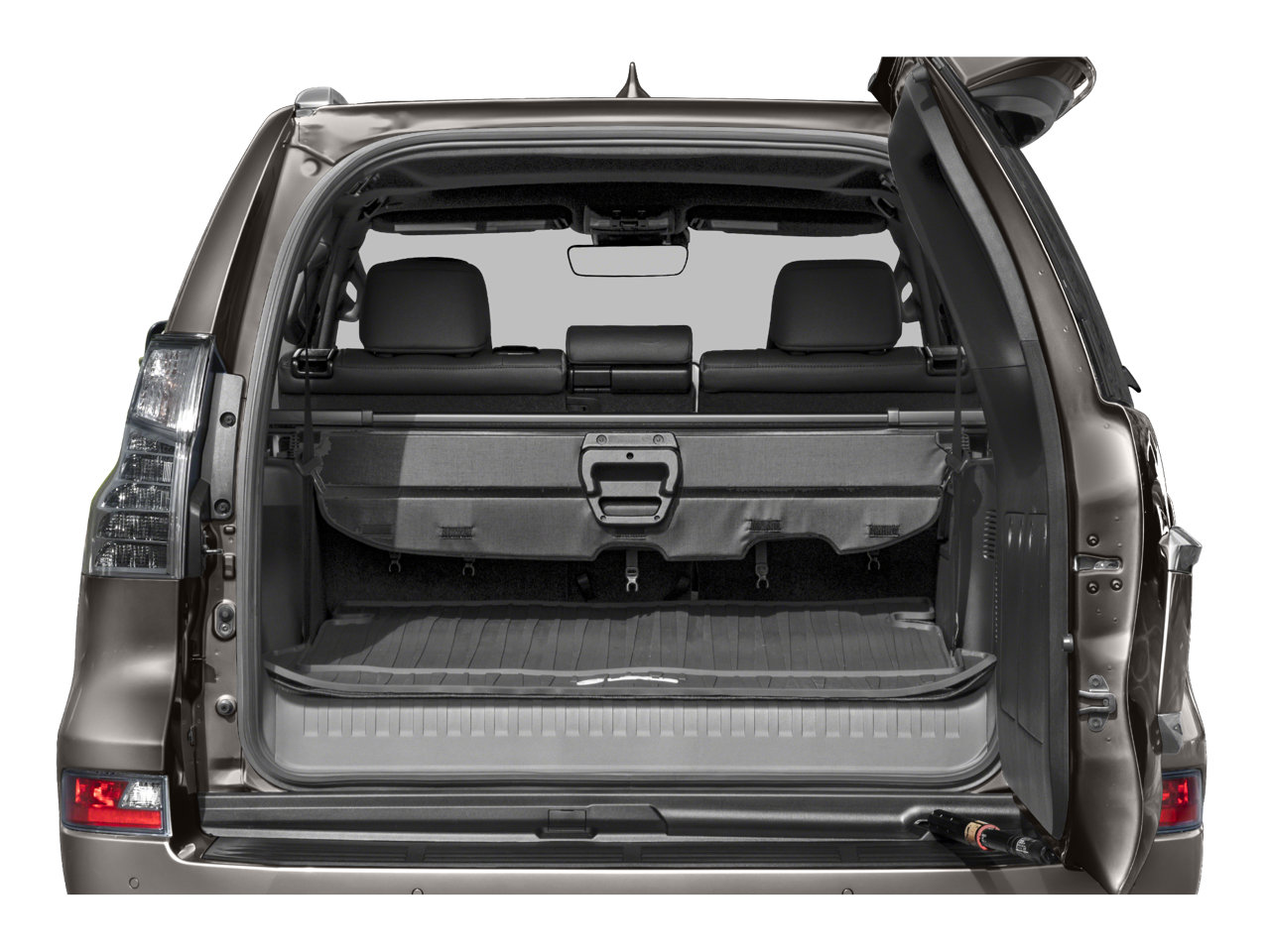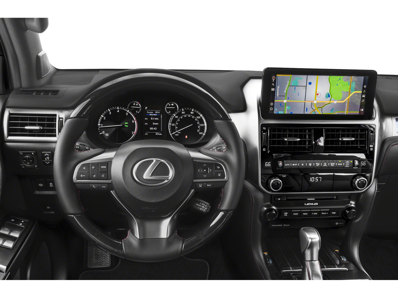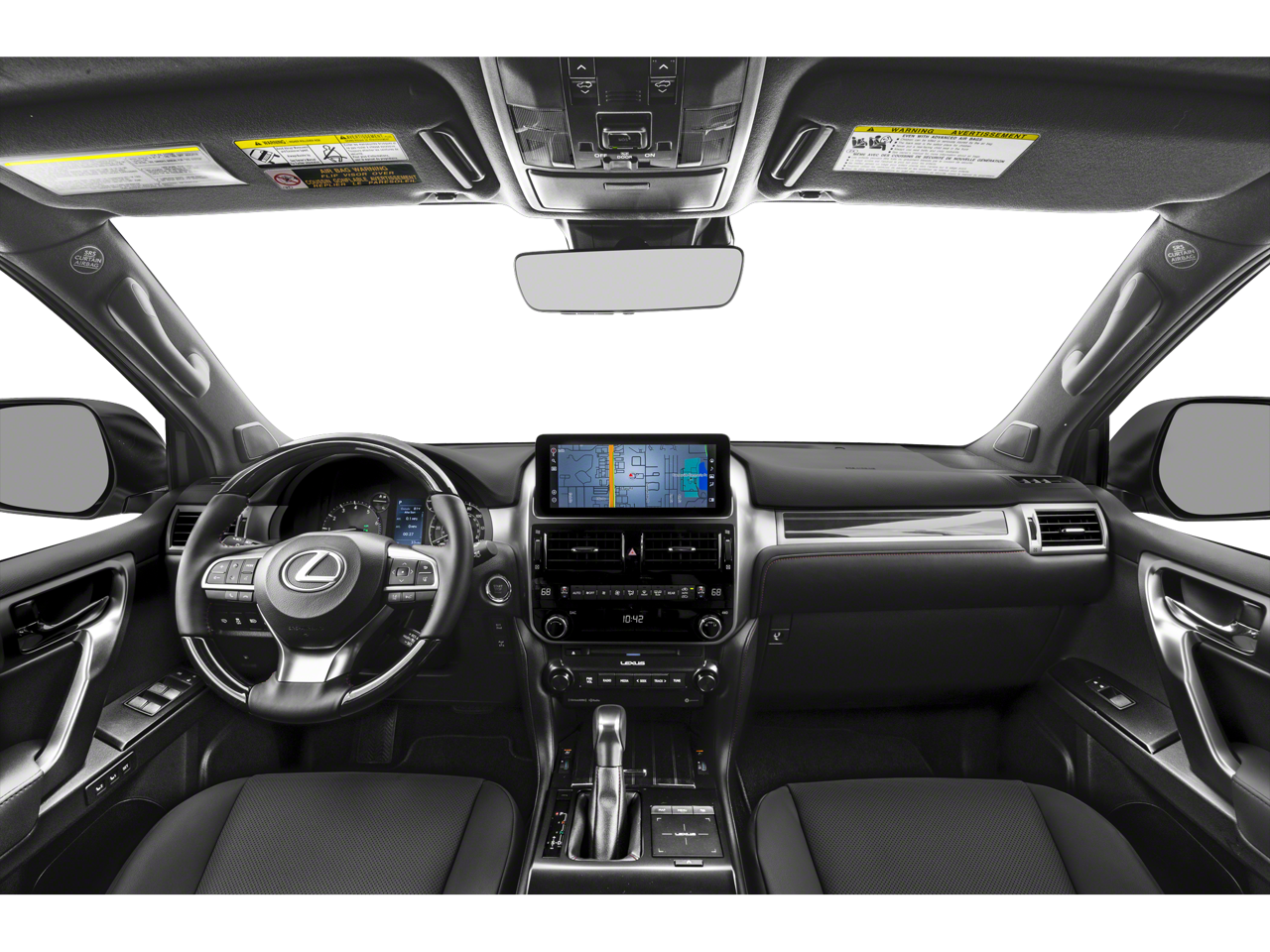 18 x 7.5J Aluminum Alloy Wheels, 2nd Row Captain's Chairs, 3.909 Axle Ratio, 3rd Row Power Seats, 3rd row seats: split-bench, 4-Wheel Disc Brakes, 9 Speakers, ABS brakes, Air Conditioning, All Weather Floor Liners w/Cargo Mat, Alloy wheels, AM/FM radio: SiriusXM, Anti-whiplash front head restraints, Apple CarPlay/Android Auto, Auto High-beam Headlights, Auto tilt-away steering wheel, Auto-dimming Rear-View mirror, Automatic temperature control, Brake assist, Bumpers: body-color, Cargo-Area Tonneau Cover, CD player, Compass, Delay-off headlights, Driver door bin, Driver vanity mirror, Driver's Seat Mounted Armrest, Dual Front & Rear Auto Air Conditioner, Dual front impact airbags, Dual front side impact airbags, Electronic Stability Control, Emergency communication system: Safety Connect (3-year trial), Exterior Parking Camera Rear, Front & Rear Heated Seats, Front anti-roll bar, Front Bucket Seats, Front dual zone A/C, Front reading lights, Front wheel independent suspension, Fully automatic headlights, Garage door transmitter: HomeLink, Headlamp Washers, Heated door mirrors, Heated Wood & Leather Steering Wheel, Illuminated entry, Illuminated running boards, Knee airbag, Leather Shift Knob, Leather steering wheel, LED Front Fog & Driving Lamp, Low tire pressure warning, Memory seat, Navigation system: Lexus Enform Dynamic Navigation, NuLuxe Seat Trim, NuLuxe Seat Trim (EA), Occupant sensing airbag, Outside temperature display, Overhead airbag, Overhead console, Panic alarm, Passenger door bin, Passenger seat mounted armrest, Passenger vanity mirror, Power door mirrors, Power driver seat, Power moonroof, Power passenger seat, Power steering, Power windows, Premium Plus Package w/Captain's Chairs, Radio data system, Radio: Lexus Multimedia System w/Navigation, Rear anti-roll bar, Rear reading lights, Rear seat center armrest, Rear side impact airbag, Rear window defroster, Rear window wiper, Remote keyless entry, Roof rack: rails only, Safety Connect, Security system, Speed control, Speed-sensing steering, Split folding rear seat, Spoiler, Steering wheel memory, Steering wheel mounted audio controls, Tachometer, Telescoping steering wheel, Tilt steering wheel, Traction control, Trip computer, Turn signal indicator mirrors, Variably intermittent wipers, Ventilated Front Seats, Wheels: 18 x 7.5J Dark Gray Metallic Alum Alloy, Windshield De-Icer, Windshield Wiper Control w/Rain Sensor. 2023 Lexus GX 460