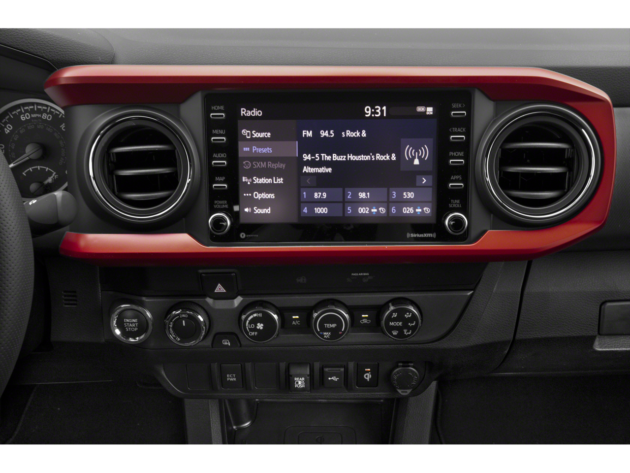 4WD, 120V/400W Deck Mounted AC Power, 17 Machined Alloy Wheels, 6 Speakers, ABS brakes, Air Conditioning, All Weather Floor Liner & Door Sill Protector (TMS), Alloy wheels, AM/FM radio: SiriusXM, Anti-whiplash front head restraints, Apple CarPlay/Android Auto, Auto High-beam Headlights, Auto-dimming Rear-View mirror, Auto-Dimming Rearview Mirror w/HomeLink, Automatic temperature control, Axle Ratio: 3.91, Blind Spot Monitor w/Rear Cross Traffic Alert, Brake assist, Bumpers: body-color, Color-Keyed Overfenders, Driver door bin, Dual front impact airbags, Dual front side impact airbags, Electronic Stability Control, Emergency communication system: Safety Connect (1-year trial), Engine Immobilizer, Exhaust Tip (TMS), Exterior Parking Camera Rear, Fabric Seat Trim, Front anti-roll bar, Front Bucket Seats, Front Center Armrest, Front Door Smart Key System w/Push Button Start, Front dual zone A/C, Front fog lights, Front reading lights, Front Seats, Front wheel independent suspension, Garage door transmitter: HomeLink, Heated door mirrors, Illuminated entry, Knee airbag, Leather Seat Trim, Leather Shift Knob, LED Headlights w/Black Bezel LED Fog Lights, Low tire pressure warning, Occupant sensing airbag, Outside temperature display, Overhead airbag, Overhead console, Panic alarm, Passenger door bin, Power Color Turn Mirror, Power door mirrors, Power driver seat, Power Sliding Rear Window w/Privacy Glass, Power steering, Power windows, Quick Charge Cable (PPO) (TMS), Radio: Audio, Radio: Premium Audio w/Dynamic Navigation, Radio: Premium JBL Audio w/Dynamic Navigation, Rear Parking Assist Sonar, Rear step bumper, Remote keyless entry, Remote Tailgate Lock (TMS), Security system, Speed control, Speed-sensing steering, Split folding rear seat, Steering wheel mounted audio controls, Tachometer, Tailgate Emblem (TMS), Telescoping steering wheel, Tilt steering wheel, Traction control, TRD Sport Package, Trip computer, Turn signal indicator mirrors, Variably intermittent wipers, 4WD.