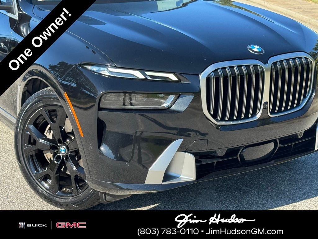 2024 BMW X7 xDrive40i 10 Speakers, 3.64 Axle Ratio, 3rd row seats: split-bench, 4-Wheel Disc Brakes, ABS brakes, Adaptive suspension, Air Conditioning, Alloy wheels, AM/FM radio: SiriusXM with 360L, AM/FM Stereo, Apple CarPlay & Android Auto Compatibility, Apple CarPlay Compatibility, Auto High-beam Headlights, Auto tilt-away steering wheel, Auto-dimming door mirrors, Auto-dimming Rear-View mirror, Auto-leveling suspension, Automatic temperature control, BMW Assist eCall, BMW TeleServices, Brake assist, Bumpers: body-color, Compass, Connected Package Pro, ConnectedDrive Services, Delay-off headlights, Drive Recorder, Driver door bin, Driver vanity mirror, Dual front impact airbags, Dual front side impact airbags, Electronic Stability Control, Emergency communication system: BMW Assist eCall, Exterior Parking Camera Rear, Four wheel independent suspension, Front anti-roll bar, Front Bucket Seats, Front Center Armrest, Front dual zone A/C, Front reading lights, Fully automatic headlights, Garage door transmitter, Genuine wood console insert, Genuine wood dashboard insert, Genuine wood door panel insert, Head restraints memory, Heads-Up Display, Heated door mirrors, Heated front seats, Heated Multi-Contour Seats, Heated steering wheel, Hi-Fi Sound System, Illuminated entry, Knee airbag, Leather steering wheel, Live Cockpit Pro, Low tire pressure warning, Memory seat, Navigation system: BMW Maps Navigation, Occupant sensing airbag, Outside temperature display, Overhead airbag, Panic alarm, Parking Assistance Package, Parking Assistant Professional, Passenger door bin, Passenger vanity mirror, Personal eSIM 5G, Power adjustable front head restraints, Power door mirrors, Power driver seat, Power Front Seats, Power moonroof: Panorama, Power passenger seat, Power steering, Power windows, Radio data system, Rain sensing wipers, Rear air conditioning, Rear anti-roll bar, Rear dual zone A/C, Rear reading lights, Rear seat center armrest, Rear window defroster, Rear window wiper, Reclining 3rd row seat, Remote keyless entry, Security system, Sensafin Upholstery, SiriusXM w/360L & 1 Year Platinum Plan Subscription, Speed control, Speed-sensing steering, Speed-Sensitive Wipers, Split folding rear seat, Spoiler, Sport steering wheel, Steering wheel memory, Steering wheel mounted audio controls, Surround View w/3D View, Tachometer, Telescoping steering wheel, Tilt steering wheel, Traction control, Trip computer, Turn signal indicator mirrors, Variably intermittent wipers, Wheels: 21 x 9.5 Y-Spoke Bi-Color, Wheels: 21 x 9.5 Y-Spoke Black, Wireless Charging Device.