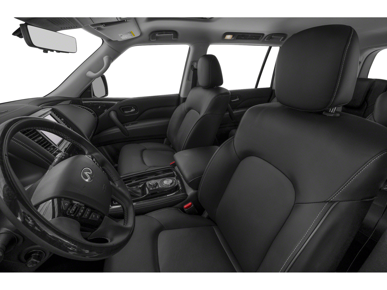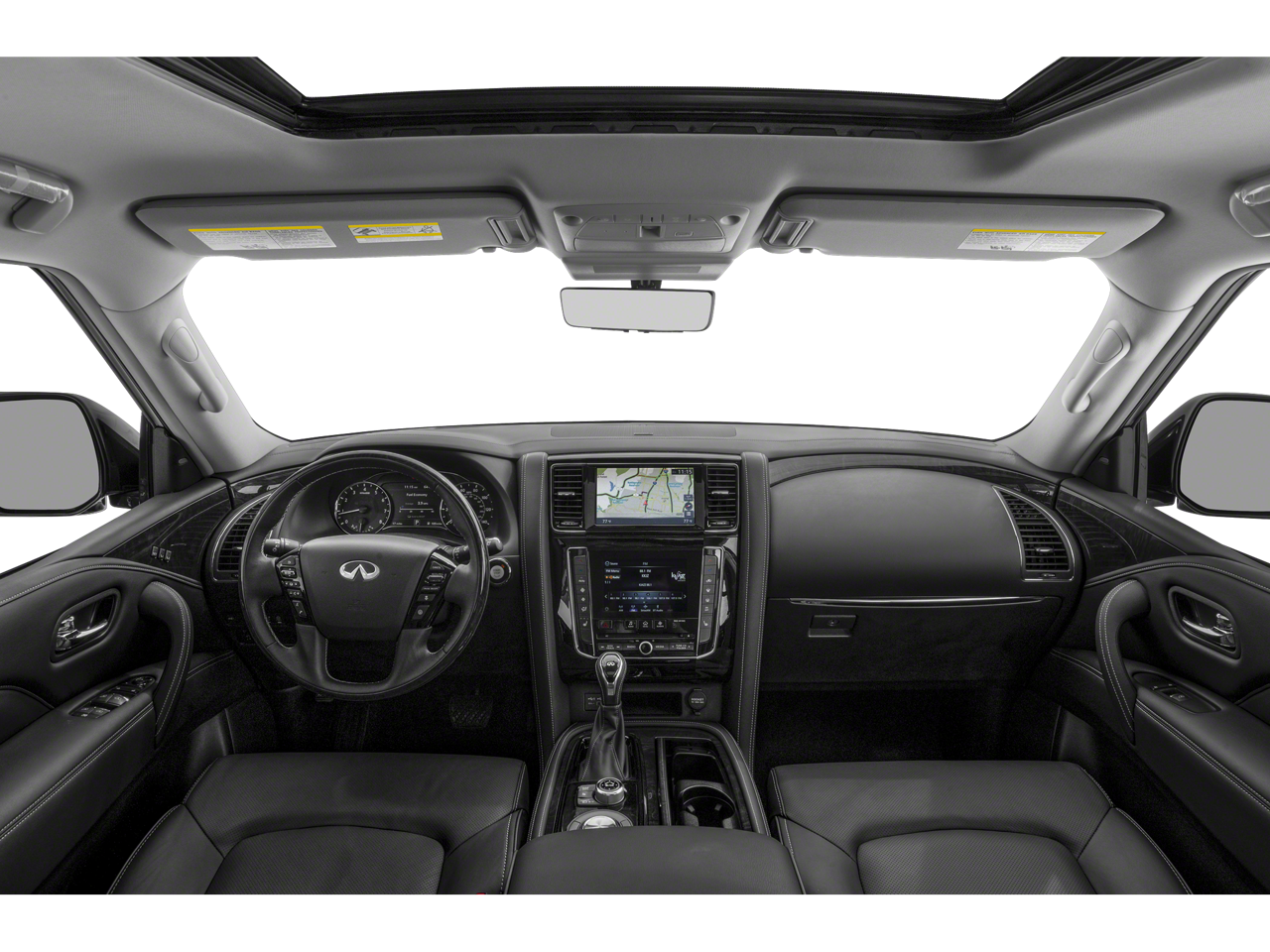 Clean CarFax, One Owner, 13 Speakers, 2.937 Axle Ratio, 20 Aluminum Alloy Wheels, 3rd row seats: bench, 4-Wheel Disc Brakes, ABS brakes, Air Conditioning, Alloy wheels, AM/FM radio: SiriusXM, Anti-whiplash front head restraints, Apple CarPlay/Android Auto, Auto High-beam Headlights, Auto tilt-away steering wheel, Auto-dimming door mirrors, Auto-dimming Rear-View mirror, Auto-leveling suspension, Automatic temperature control, Brake assist, Bumpers: body-color, Compass, Delay-off headlights, Driver door bin, Driver vanity mirror, Dual front impact airbags, Dual front side impact airbags, Electronic Stability Control, Emergency communication system: INFINITI InTouch, Four wheel independent suspension, Front anti-roll bar, Front Bucket Seats, Front Center Armrest, Front dual zone A/C, Front fog lights, Front reading lights, Fully automatic headlights, Garage door transmitter: HomeLink, Heated door mirrors, Heated Front Bucket Seats, Heated front seats, Heated steering wheel, Illuminated entry, Leather Shift Knob, Leather steering wheel, Leather-Appointed Seats, Literature Kit, Low tire pressure warning, Memory seat, Navigation system: INFINITI InTouch Navigation, Occupant sensing airbag, Outside temperature display, Overhead airbag, Overhead console, Panic alarm, Passenger door bin, Passenger vanity mirror, Power door mirrors, Power driver seat, Power Liftgate, Power moonroof, Power passenger seat, Power steering, Power windows, Radio data system, Radio: Bose Premium Audio System w/13 Speakers, Rain sensing wipers, Rear air conditioning, Rear anti-roll bar, Rear reading lights, Rear seat center armrest, Rear window defroster, Rear window wiper, Reclining 3rd row seat, Remote keyless entry, Security system, Speed control, Speed-sensing steering, Split folding rear seat, Spoiler, Steering wheel memory, Steering wheel mounted audio controls, Tachometer, Telescoping steering wheel, Tilt steering wheel, Traction control, Trip computer, Turn signal indicator mirrors, Variably intermittent wipers, Voltmeter.