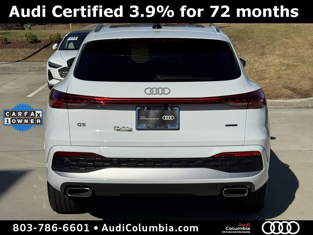 2025 Audi Q5 2.0T Premium Plus Clean CarFax, Local Trade, One Owner, Well Maintained, 20 Wheel Package with 5-Arm Design, 4-Wheel Disc Brakes, ABS brakes, Adaptive Cruise Assist, Alloy wheels, Animation For Headlights and Taillights, Auto High-beam Headlights, Auto-dimming Rear-View mirror, Automatic temperature control, Bang & Olufsen Sound System with 3D Sound, Dual front impact airbags, Dual front side impact airbags, Dynamic Interaction Light, Emergency communication system: Audi connect CARE, Exterior Parking Camera Rear, Front anti-roll bar, Front dual zone A/C, Garage door transmitter: HomeLink, Head-Up Display, Headlight Washers, Heated Front Bucket Seats, Heated Steering Wheel with Hands-on Detection, Leather Seating Surfaces, LED Headlights Plus with Digital DRL, LED Interior Lighting Pro Package, Low tire pressure warning, Memory seat, Navigation system: Audi Navigation Plus, Occupant sensing airbag, Overhead airbag, Panoramic Sunroof, Power Liftgate, Premium Plus, Rain sensing wipers, Rear anti-roll bar, Speed-Sensitive Wipers, Steering wheel mounted audio controls, Top View Camera System, USB Power Delivery (2x60W Front and 2x100W Rear), Wheels: 20 5-Arm Design.