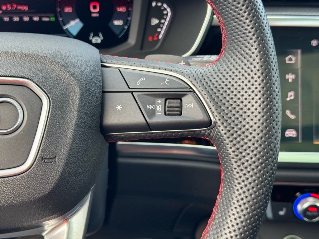 2025 Audi Q3 Premium Plus Clean CarFax, Local Trade, One Owner, Well Maintained, 10 Speakers, 4-Wheel Disc Brakes, ABS brakes, Audi smartphone interface (Apple CarPlay/Android Auto), Auto High-beam Headlights, Automatic temperature control, Black Exterior Mirrors, Black Exterior Trim and Badges, Black Optic Plus Package, Black Roof Rails, Carbon Inlays, Convenience Package, Dinamica Upper Inlay and Door Armrests in Steel Gray, Dual front impact airbags, Dual front side impact airbags, Emergency communication system: Audi connect CARE, Exterior Parking Camera Rear, Front anti-roll bar, Front dual zone A/C, Fully automatic headlights, Heated front seats, Knee airbag, Leather Seating Surfaces, LED Interior Lighting Plus Package, Low tire pressure warning, Occupant sensing airbag, Overhead airbag, Power Liftgate, Power moonroof: Panoramic, Premium Plus Package, Rain sensing wipers, Rear anti-roll bar, SONOS Premium Sound System with 3D Sound, Speed-sensing steering, Sport Front Bucket Seats with S Embossing, Stainless Steel Pedal Caps, Steering wheel mounted audio controls, Top View Camera System, Wheels: 19 7-Spoke-Rotor-Design.