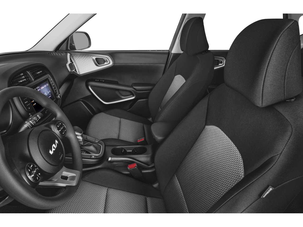 4-Wheel Disc Brakes, 6 Speakers, 6.5J x 16 Alloy Wheels, 6.5J x 16 Steel Wheels, ABS brakes, Air Conditioning, AM/FM radio, Apple CarPlay & Android Auto, Auto High-beam Headlights, Brake assist, Bumpers: body-color, Carpeted Floor Mats, Compass, Delay-off headlights, Driver door bin, Driver vanity mirror, Dual front impact airbags, Dual front side impact airbags, Electronic Stability Control, Exterior Parking Camera Rear, Front anti-roll bar, Front Bucket Seats, Front Center Armrest, Front reading lights, Front wheel independent suspension, Fully automatic headlights, Illuminated entry, Low tire pressure warning, Occupant sensing airbag, Outside temperature display, Overhead airbag, Overhead console, Panic alarm, Passenger door bin, Passenger vanity mirror, Power door mirrors, Power steering, Power windows, Radio data system, Radio: AM/FM/MP3/HD Audio System, Rear window defroster, Rear window wiper, Remote keyless entry, Speed control, Speed-sensing steering, Split folding rear seat, Steering wheel mounted audio controls, Tachometer, Telescoping steering wheel, Tilt steering wheel, Traction control, Trip computer, Variably intermittent wipers, Woven & Tricot Cloth Seat Trim. 2025 Kia Soul LX