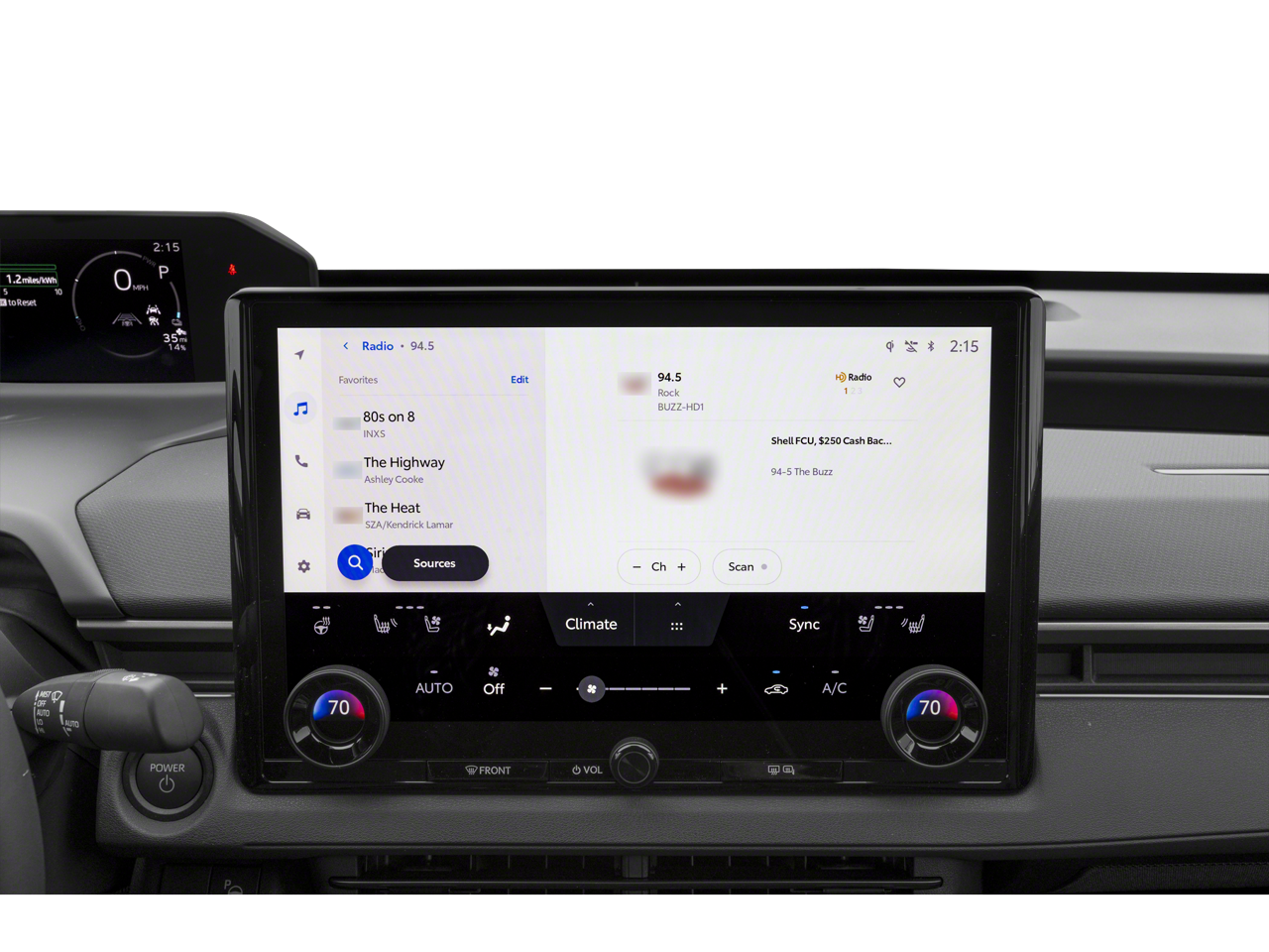 - Radio w/Seek-Scan, Clock, Speed Compensated Volume Control, Steering Wheel Controls, Voice Activation, Radio Data System and External Memory Control